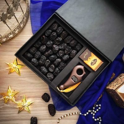 Get ready to feel blessed with our Contemporary Ramadan gift box that includes Ajwa dates 250g, a Tasbeeh/(digital counter) and Itar inside the box. The box is beautifully wrapped with the base of silk or velvet foam lining to give it a more classy look.