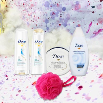 - This basket includes Dove Shampoo, Dove Conditioner, Dove Moisturizer Cream, Dove Shower Gel, Loofah