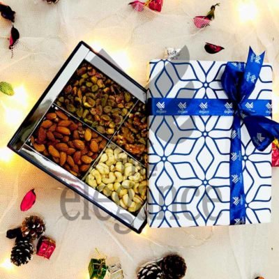 You can savor the true flavors of winter with our four partitions Dry Fruit Box. The Dry Fruit box has a variety of fresh, crispy, flavorful, and top-of-the-line dry fruits that you can present as a gesture of love and care to anyone.
