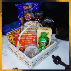 Savor the traditional flavors of Dahi Baray and Vermicelli, adding a touch of authenticity to your Iftar meals. Treat yourself to the crunchy goodness of Nimco while enjoying the rich flavors of mixed dry fruits presented in a charming jar. Each bite promises a burst of flavor and texture that will transport you to a world of gourmet delights.
