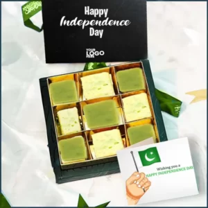 Celebrate Pakistan’s Independence Day in style with our Independence Day Sweets Box. This specially curated box offers you the option of selecting 4, 9, or 12 boxes, each filled with a delectable assortment of traditional sweets. You can personalize each box with your company’s logo. Additionally, you have the option to include a personalized message, expressing your well wishes and patriotic sentiments. It’s a perfect gift for corporate events, employee recognition, or client appreciation, showcasing your company’s commitment to celebrating Pakistan’s Independence Day.